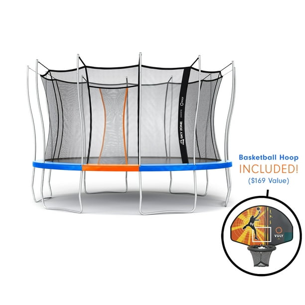It's 'goldilocks' safety net guides you to the center of the trampoline, thus absorbing the impact of your bounces and reducing chance of injury. The bigger the trampoline, the bigger the fun! 12 ft & 14 ft available exclusively at walmart. Vuly is committed to making play both safe and fun with its innovative trampolines, swing sets, and accessories. The basketball set is compatible with all vuly trampolines and the 360 swingset (requires an adapter for the 360 pro, which is sold separately). Please checkout the electronics saving center. Put a vuly trampoline in your backyard and watch your kids spring into action. Made in the usa of the highest quality materials. Camp out in your backyard. The vuly 2 trampoline offers superior safety and a fantastic bounce at an affordable price. This vuly basketball hoop set adds a whole new dimension to your jump experience. It has a polyethylene mesh enclosure that will both keep your child safe and stand the test of time. And it's not one of sketchy pricing tricks either.